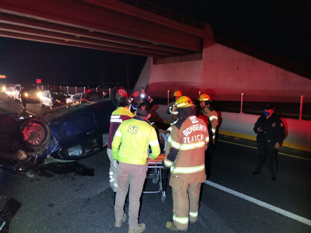 Los Bomberos pertenecientes a la Secretaría de Seguridad Ciudadana (SSC) acudieron al libramiento Tlaxcala a la altura de San Sebastián Atlahapa, frente al centro comercial Galerías, donde un vehículo marca Nissan tipo Versa color azul con placas de circulación XVX-018-A del estado, volcó sobre la cinta asfáltica y en su interior un masculino lesionado.