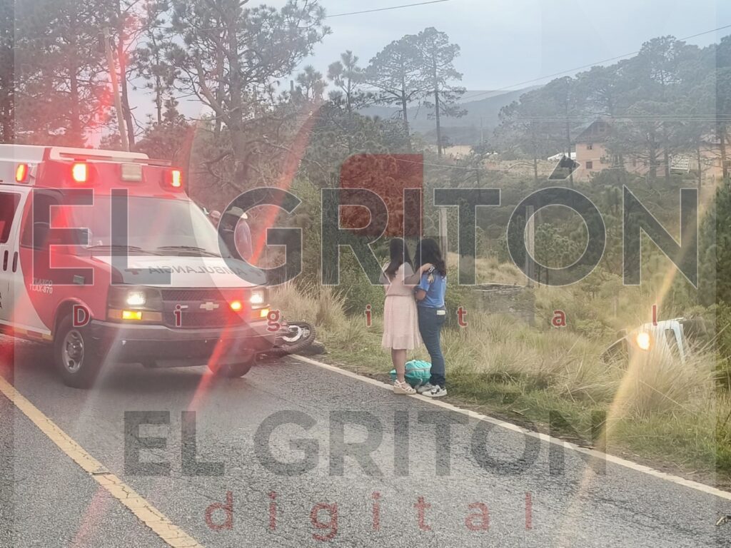 Un aparatoso accidente entre una motocicleta y un vehículo particular dejó como saldo a una pareja originaria de San Martín Texmelucan, Puebla, gravemente herida, en hechos registrados la tarde del domingo 26 de abril sobre la carretera federal Tlaxco–Chignahuapan, a la altura del kilómetro 34+600, en la comunidad de Teopan.