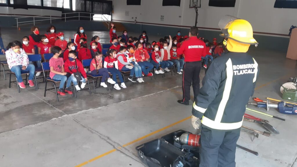 La Secretaría de Seguridad Ciudadana (SSC), a través del Heroico Cuerpo de Bomberos, realizó un simulacro de incendio en el Jardín de Niños “Fray Pedro de Gante”, ubicado en el municipio de Chiautempan para dotar a la comunidad educativa de conocimientos básicos que les permitan actuar de forma oportuna ante posibles emergencias.