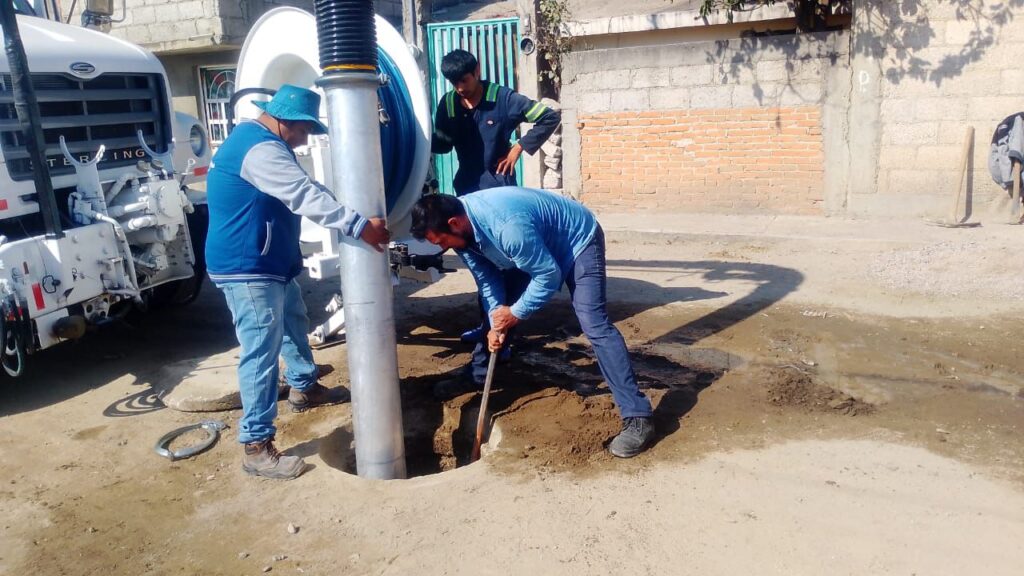 Mediante el uso del camión vactor, personal especializado lleva a cabo la limpieza profunda de líneas de drenaje, con el objetivo de evitar taponamientos, prevenir afectaciones a viviendas y mejorar la conducción de las aguas residuales, especialmente en zonas donde se han detectado obstrucciones recurrentes.