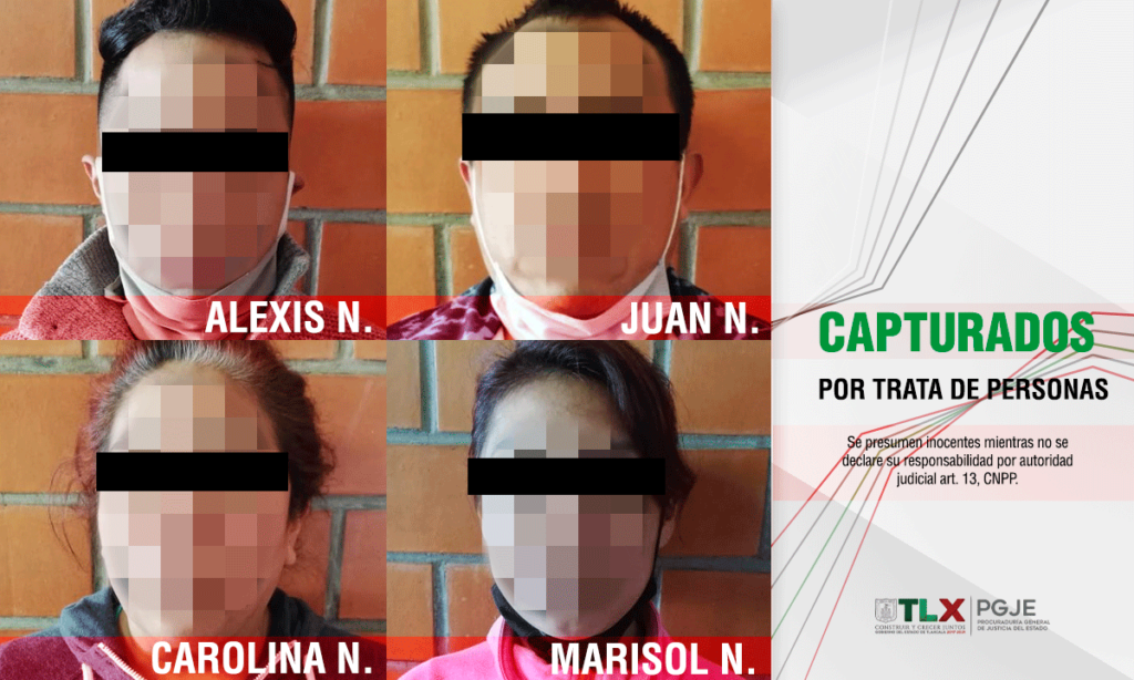 · Padre, madre, hijo y nuera, fueron aprehendidos por oficiales de la Policía de Investigación especializados para la Investigación y Persecución de los Delitos en materia de Trata de Personas.
