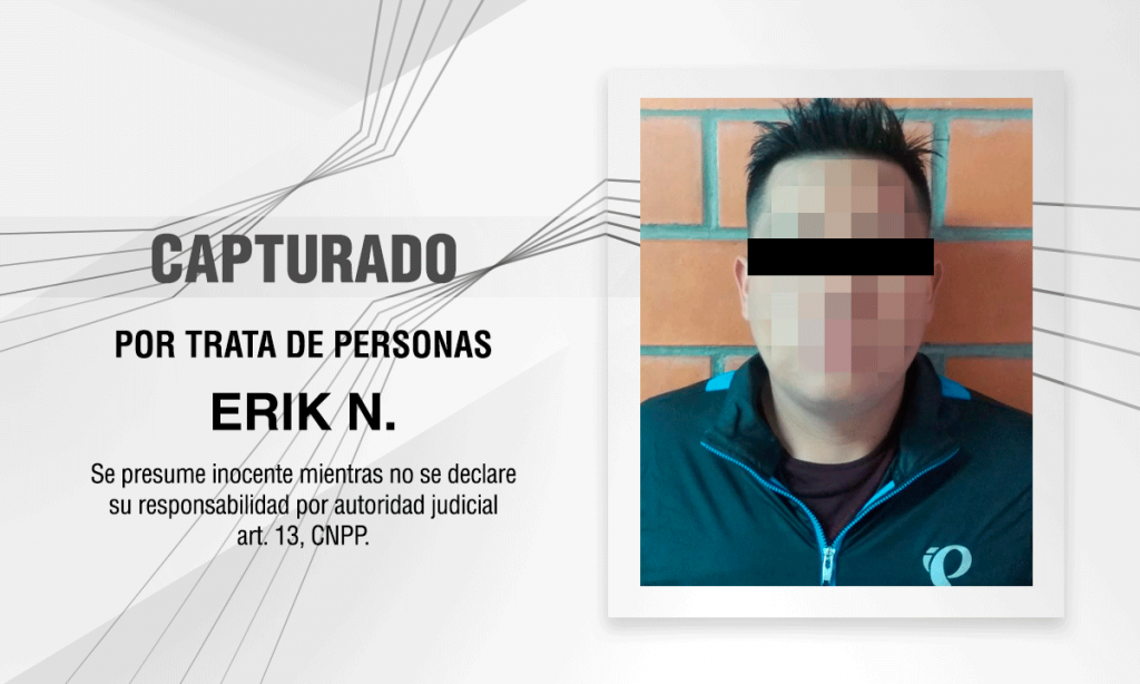 El trabajo multidisciplinario del personal de la Unidad de Investigación de Delitos de Alto Impacto (UIDAI) adscrita a la Procuraduría General de Justicia del Estado (PGJE) y la Fiscalía General del Estado de Guanajuato (FGE), permitió la captura de Erik N., quien contaba con una orden de aprehensión en aquella entidad por el delito de trata de personas.