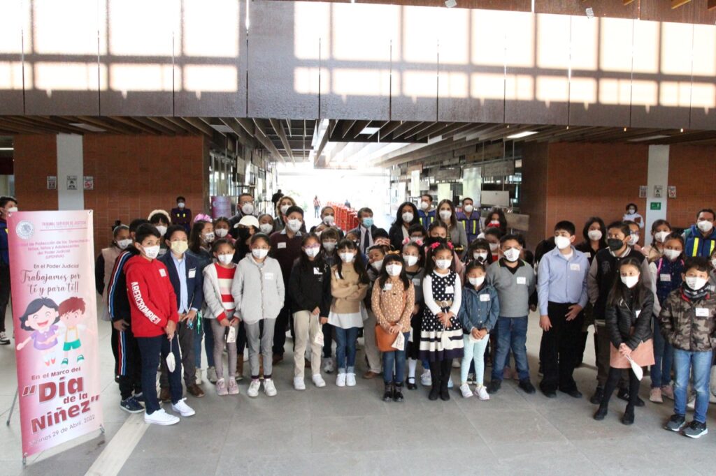 Acompañada de sus homólogos, Anel Bañuelos Meneses y Pedro Sánchez Ortega, así como de los integrantes del Consejo de la Judicatura, Dora María García Espejel, Edith Alejandra Segura Payán y Víctor Hugo Corichi Méndez, la Magistrada Presidenta invitó a las y los niños a recorrer Ciudad Judicial, para que conocieron las labores que desempeñan las áreas jurisdiccionales y administrativas.