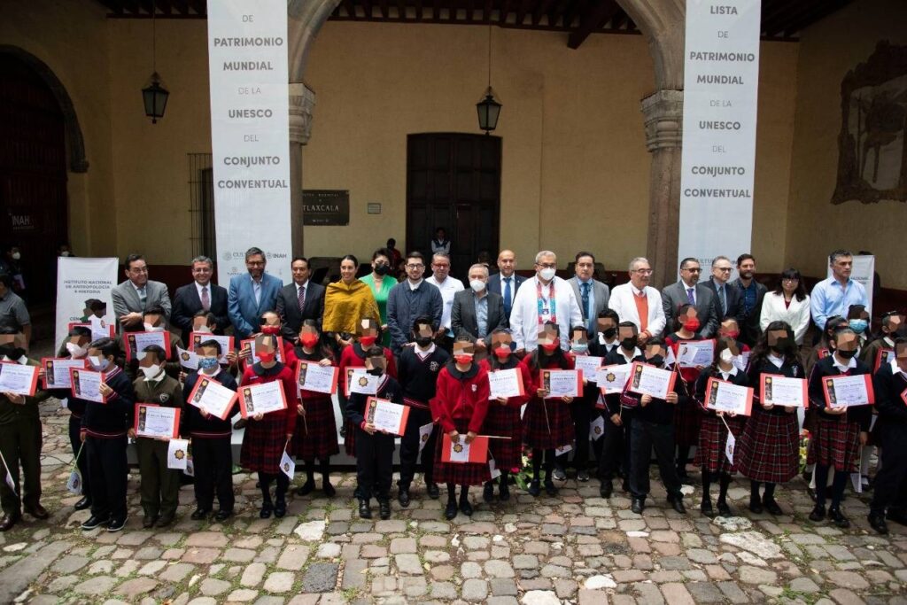 Durante el acto, 40 niñas y niños de las primarias Emiliano Zapata, Manuel Lardizábal y Candelario Nava Jiménez recibieron un certificado como Guardianes del Patrimonio Cultural del estado de Tlaxcala.