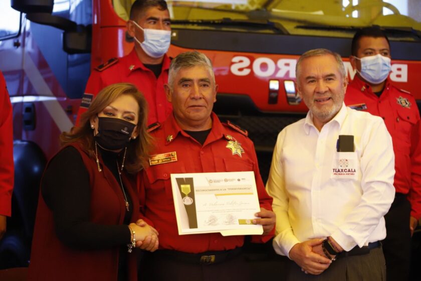Durante el evento, las autoridades entregaron reconocimientos por su perseverancia y valentía a los bomberos Enrique Huerta Martínez, Jaime Palacios Pilotzi, Miguel Antonio Morales Castillo, Paco Galván Cortés, Fernando Zempoaltecal, Óscar Santiago Serrano, Lamberto Pantoja Yáñez, Javier Virgilio Xahuentitla Juárez, Pedro Espinosa Carmona y Julio Antonio Hernández López.
