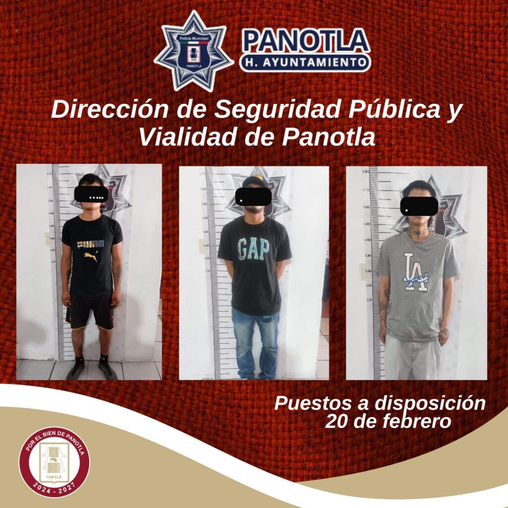 La Dirección de Seguridad Pública y Vialidad del Municipio de Panotla informa que, derivado de los patrullajes de rutina implementados con el objetivo de prevenir e inhibir conductas delictivas, se logró la detención de tres personas del sexo masculino que se encontraban consumiendo narcóticos en la vía pública.