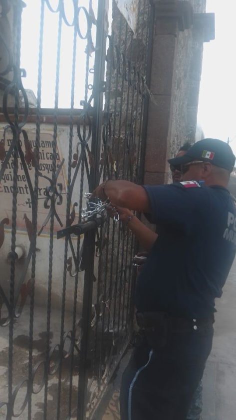 A partir de este día las visitas a los campo santos quedarán canceladas y únicamente se dará prioridad a la apertura de estos en caso de una inhumación, los panteones permanecerán cerrados hasta el próximo 31 de mayo, siempre y cuando no haya otra indicación por parte de las autoridades federales de salud.