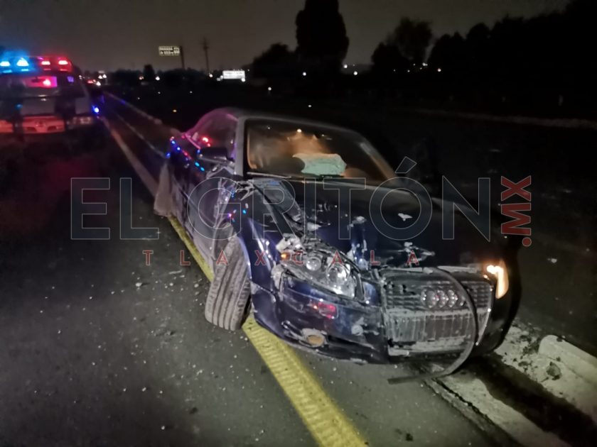 Un hombre y una mujer en evidente estado de ebriedad, fueron asegurados por policías municipales de Panotla, luego de que sobre la autopista Tlaxcala-Texmelucan, colisionaran su vehículo tipo Audi, color azul marino, contra el camellón central de la vía de comunicación.