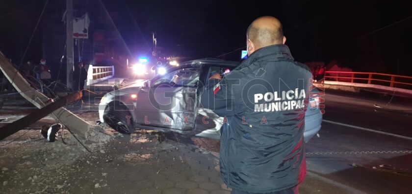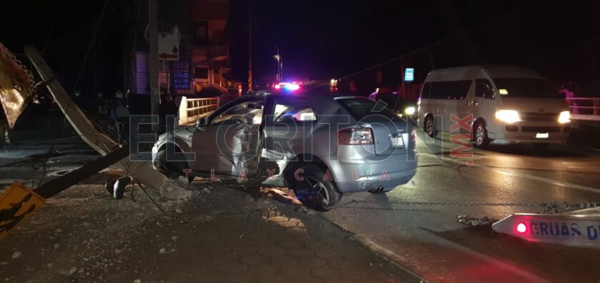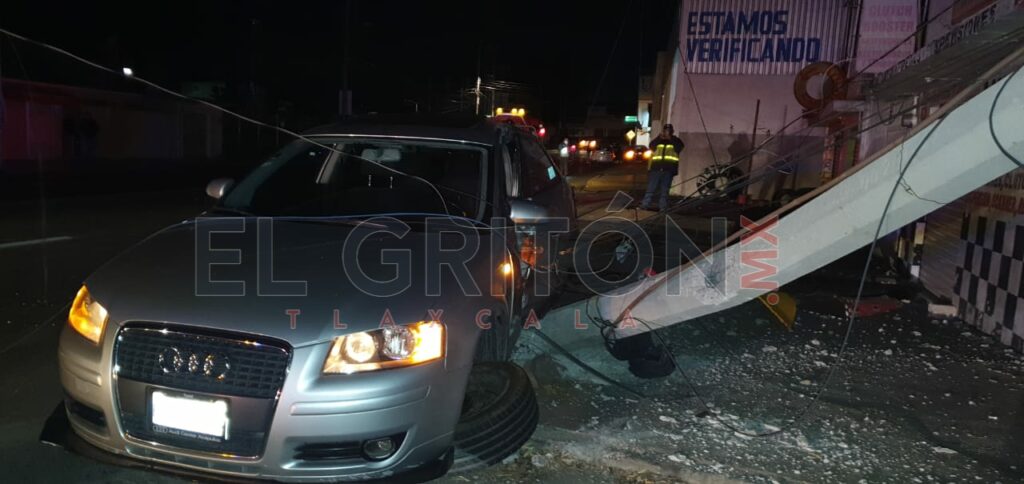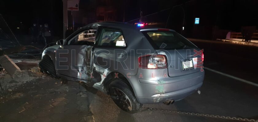 Los tripulantes de un vehículo Audi A-3, dejaron sin luz a varias colonias de los municipios de Tlaxcala y Chiautempan, luego de impactar su unidad contra un poste de la Comisión Federal de Electricidad y Teléfonos de México sobre el bulevar Ocotlán, a la altura de la Unidad Santa Cruz.