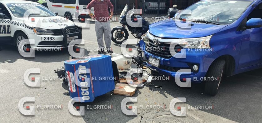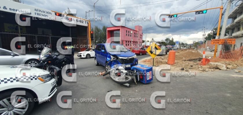Un motociclista repartidor de pizza, resultó lesionado al impactar connuna camioneta en el bulevar Ocotlán – Chiautempan, con dirección a éste último municipio, la tarde de este domingo. El percance ocurrió a las 16:40 horas, por lo que de inmediato el servicio de emergencias 911, alertó a elementos de la Secretaría de Seguridad Ciudadana (SSC), quienes acudieron y abanderaron la zona.