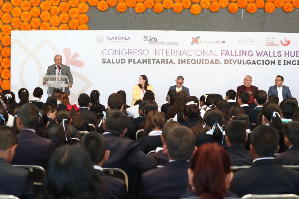 Recalcó que al igual que Pauta y Falling Walls, el gobierno del estado ha asumido la importancia de la ciencia como un eje fundamental de desarrollo y a través del sector educativo se derriban muros para que más niños y niñas se enamoren de la ciencia.