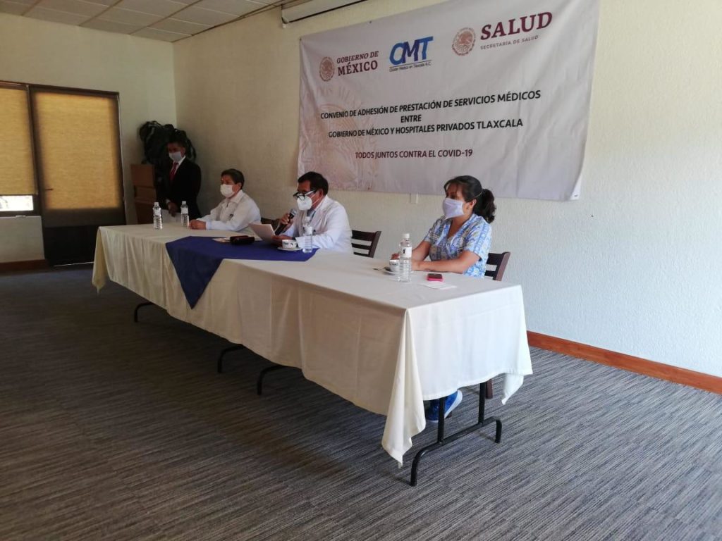 Este día se anunció el convenio de adhesión entre el Clúster de Médicos de Tlaxcala y el Gobierno de México, para la prestación de servicios a derechohabientes y beneficiarios del sector social, ante la posibilidad de que hospitales del sector público se saturen en la fase 3 de la pandemia por Covid 19.