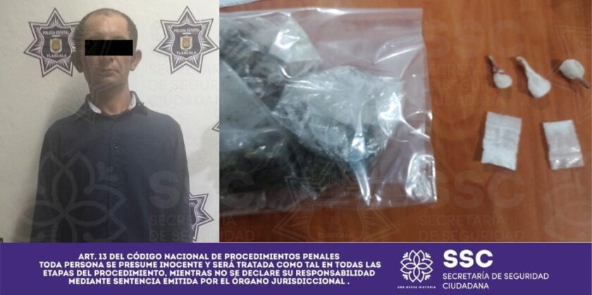 Mediante acciones disuasivas, elementos de la Dirección de Seguridad Pública adscrita a la Secretaría de Seguridad Ciudadana (SSC) aseguraron a dos personas por su presunta responsabilidad por delitos contra la salud en su modalidad de narcomenudeo, en los municipios de Tetla de la Solidaridad y Papalotla.