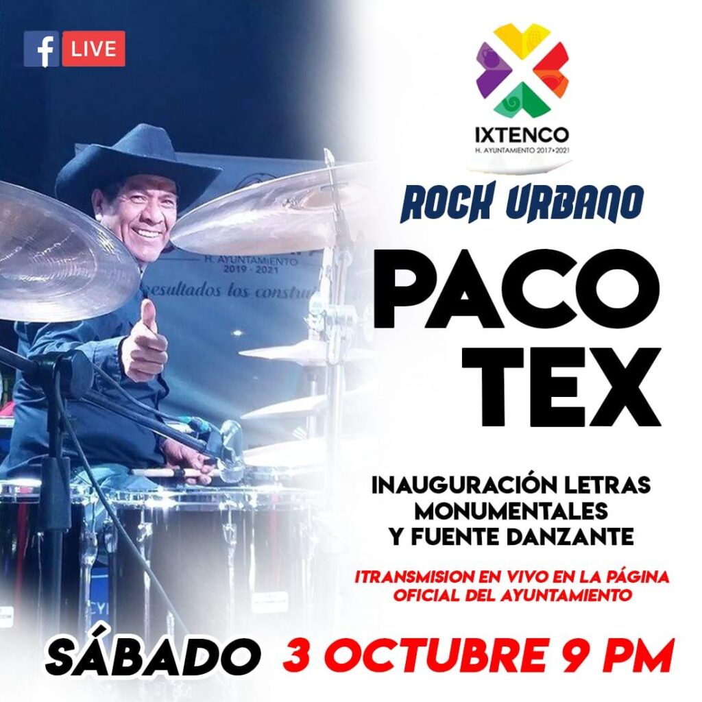 Este concierto, dará inicio en punto de las 21 horas, el próximo sábado 3 de octubre en la página: https://www.facebook.com/AyuntamientoIxtenco2017 y será encabezado por “Paco Tex”, integrante de la agrupación “Tex Tex”.