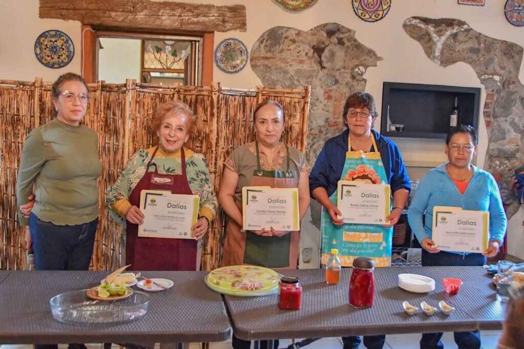 Este día, el H. Ayuntamiento de Huamantla, que encabeza Salvador Santos Cedillo, a través de la Coordinación de Agricultura realizó con éxito la primera clase magistral “Cocinando con Dalias”, que fue impartida por la maestra Lupita Treviño Castro.
