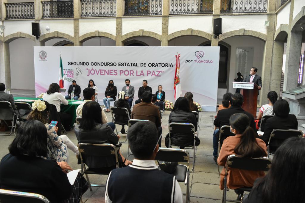 El Congreso del Estado de Tlaxcala fue sede del Segundo Concurso Estatal de Oratoria “Jóvenes por la Paz”, organizado por el Colectivo “Por Tlaxcala”, en el que se contó con la participación de niñas y niños de entre 8 y 14 años de edad, así como jóvenes entre los 16 y 31 años de edad.