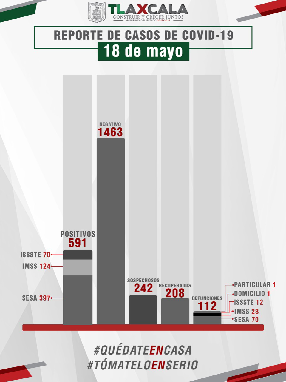 De esta manera, la entidad registra 591 casos positivos, 208 personas recuperadas de la enfermedad y 112 fallecimientos.