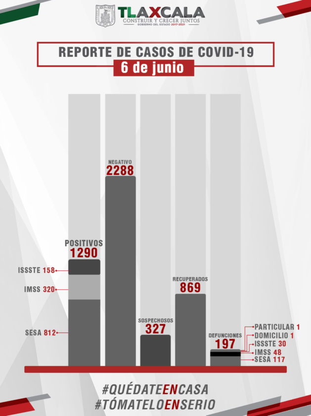 De acuerdo con el reporte de este domingo, la Secretaría de Salud del Estado (SESA) confirmó 58 casos positivos, 39 personas recuperadas y 4 defunciones más de Covid-19 en Tlaxcala.