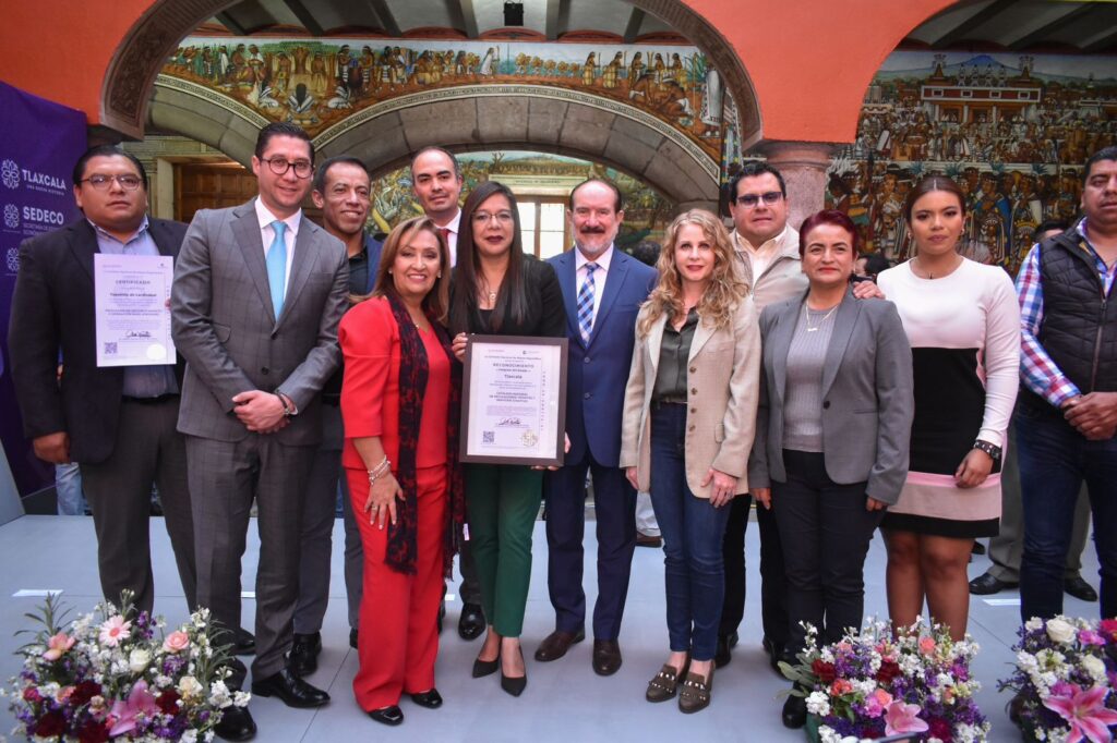 En Palacio de Gobierno, el Comisionado Nacional de Mejora Regulatoria del Gobierno de México, Alberto Montoya Martín del Campo, y la gobernadora del Estado, Lorena Cuéllar Cisneros, entregaron el reconocimiento a la presidenta de la Mesa Directiva de la LXIV Legislatura, diputada Leticia Martínez Cerón, que ubica a Tlaxcala como el segundo Congreso del país en cumplir con todas las disposiciones de la Ley General de Mejora Regulatoria.