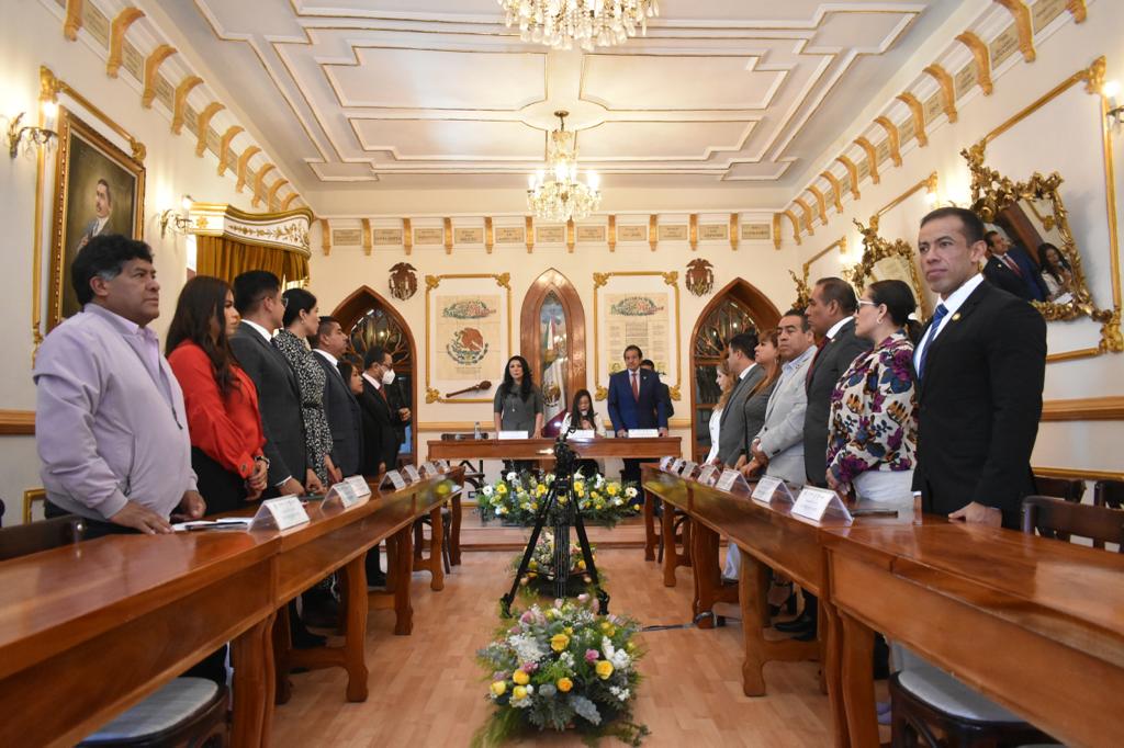 La presidenta de la Mesa Directiva, diputada Leticia Martínez Cerón, al dar cumplimiento a lo establecido en el decreto 123 publicado en el Periódico Oficial, señaló que el compromiso del Congreso del Estado para fortalecer el municipalismo, dotándolo de los ordenamientos legales necesarios que garanticen la relación armónica de las y los tlaxcaltecas.
