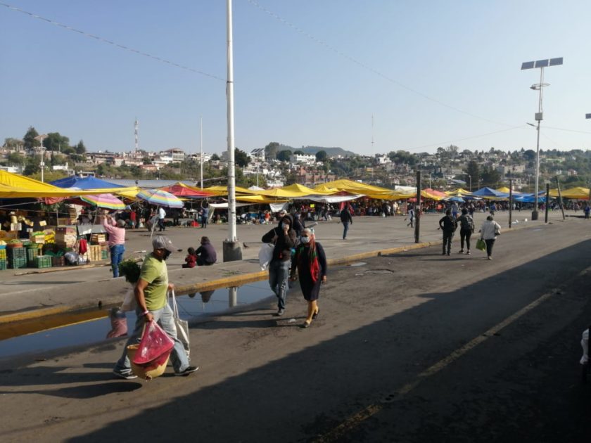 Por tercer fin de semana consecutivo, el ayuntamiento de Tlaxcala y el gobierno del Estado, implementaron las medidas de prevención para hacer frente a la pandemia por el Covid-19 en el tianguis sabatino con la entrega de cubrebocas, gel antibacterial, toma de temperatura, entre otras.