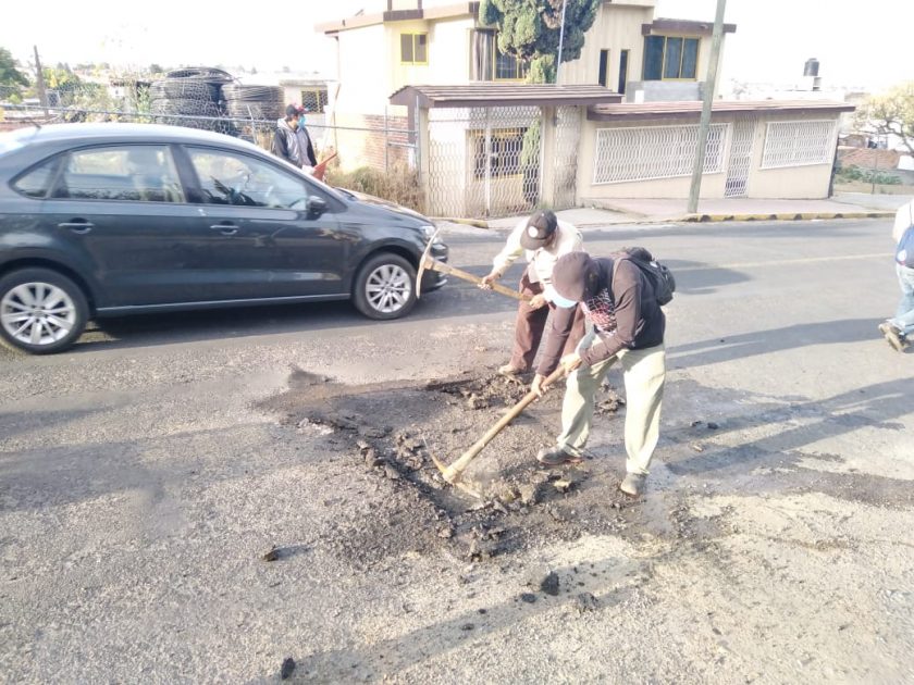La Dirección de Servicios Públicos Municipales de Tlaxcala continúa con el programa de bacheo tanto en la cabecera municipal como en las comunidades y colonias, a fin de atender esta problemática que aqueja a la ciudadanía, además de que contribuyen a disminuir percances viales que pudieran suscitarse por los desperfectos asfálticos.