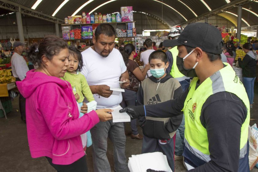 Como parte de la estrategia, integrantes de las “Brigadas Cuídate” de la SESA realizaron la toma de temperatura con termómetros digitales, además difundieron entre la población la importancia de reforzar las medidas preventivas y del cuidado a la salud a visitantes y vendedores.
