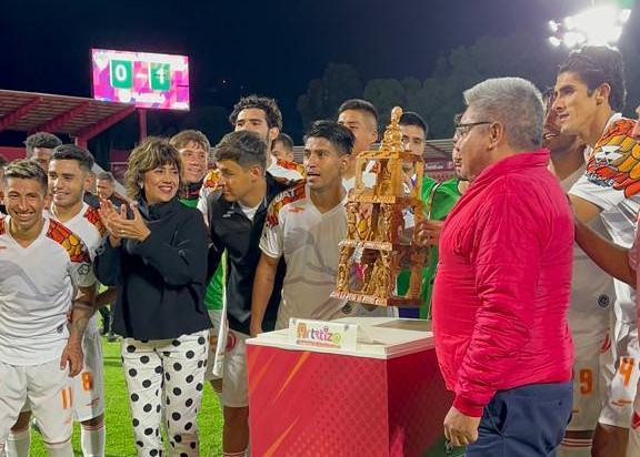 La presidenta del Patronato para las Exposiciones y Ferias en la Ciudad de Tlaxcala, Rosa Elena Nava García Méndez entregó el tan ansiado trofeo al conjunto de Ciudad Victoria, en el encuentro correspondiente a Jornada 15 del Torneo Apertura 2023 de la Liga de Expansión Mx.