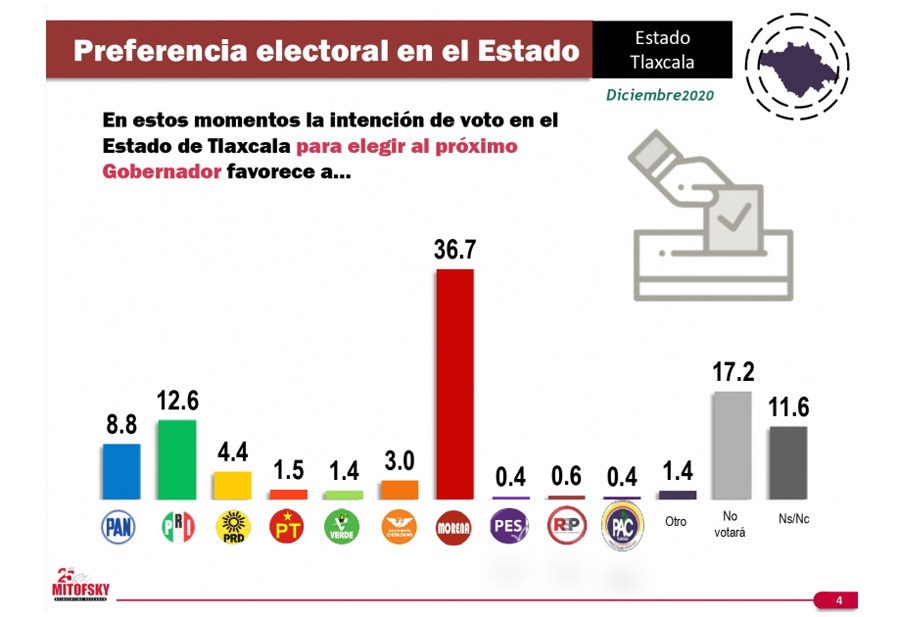 La encuesta es de diciembre, sin embargo la preferencia electoral la mantiene MORENA con un 36.7% de preferencia.