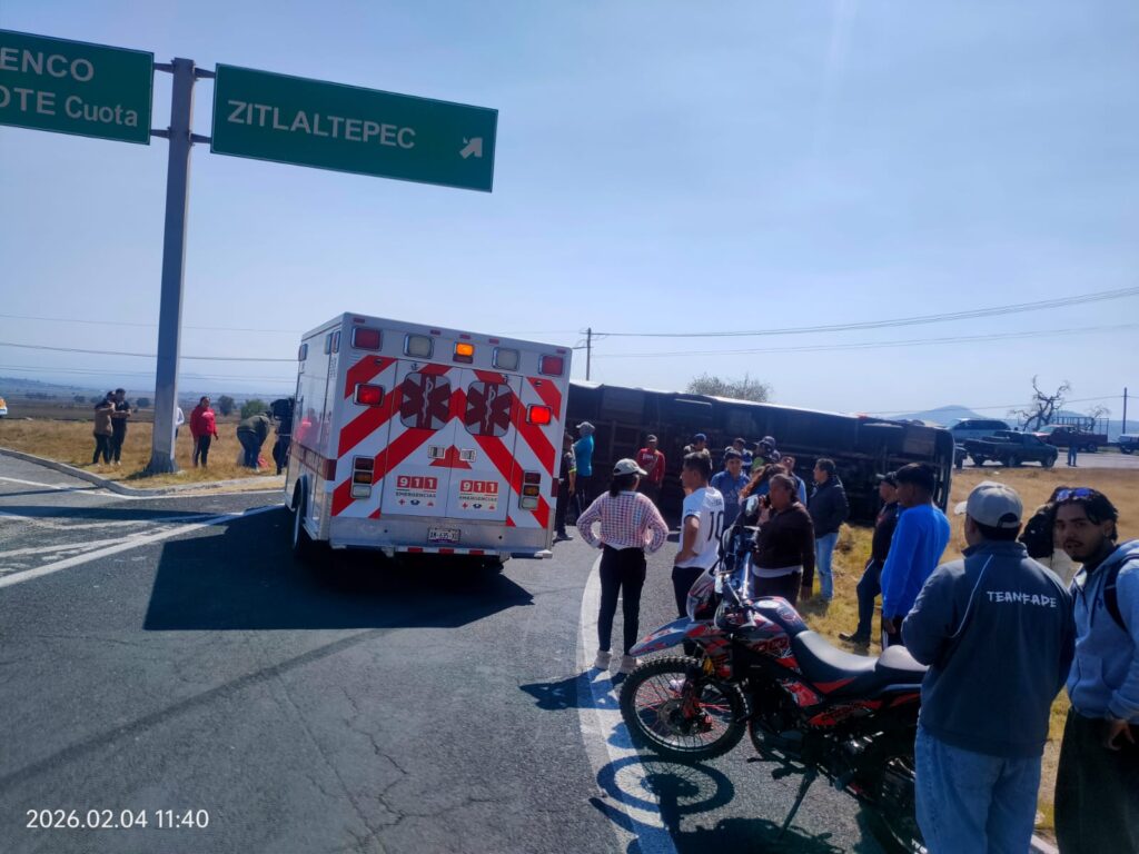 Un choque entre un autobús de la empresa “Expresos” y un camión de volteo ocurrido la mañana de este martes sobre la carretera Ixtenco–Zitlaltepec dejó como saldo cuatro personas lesionadas de diversas prioridades, además de más de diez pasajeros con crisis nerviosa, informaron autoridades locales.