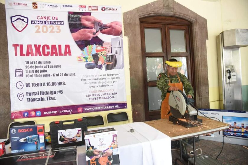 El intercambio de armas de fuego por electrodomésticos que realiza la Secretaría de la Defensa Nacional en coordinación con la Secretaría de Seguridad Ciudadana de Tlaxcala y el Ayuntamiento capitalino, continúa con buena aceptación entre la ciudadanía.