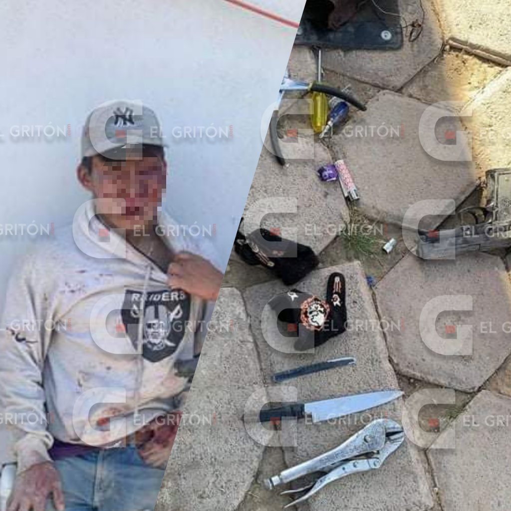 Con una pistola de juguete, un cuchillo y herramientas para la construcción, fue detenido un joven de 23 años de edad, después de que fue sorprendido robando al interior de un domicilio, la tarde de este sábado.