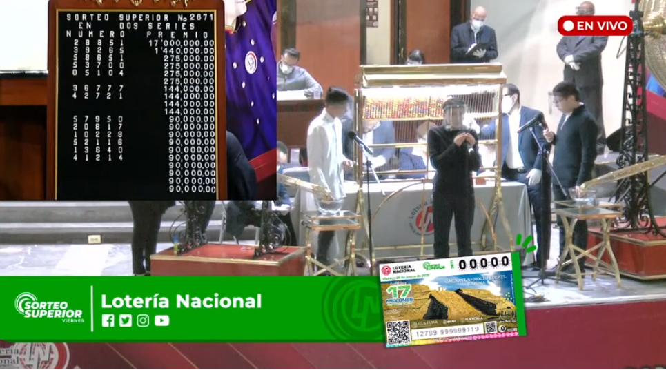 Cabe señalar que el sorteo estuvo encabezado por Mitzi Jocelyn Molina Ramírez, Gerente de Sorteos, en representación de Margarita González Saravia Calderón, Directora General de la Lotería Nacional.