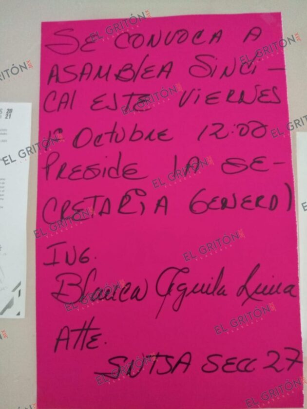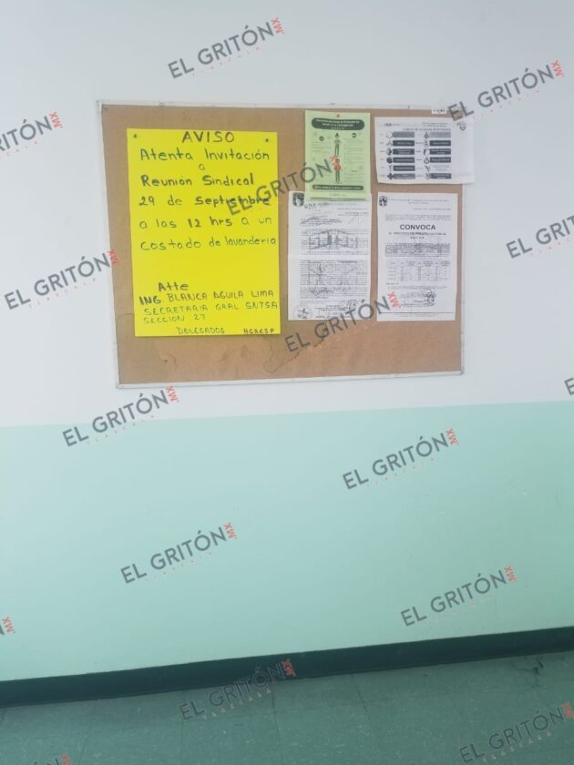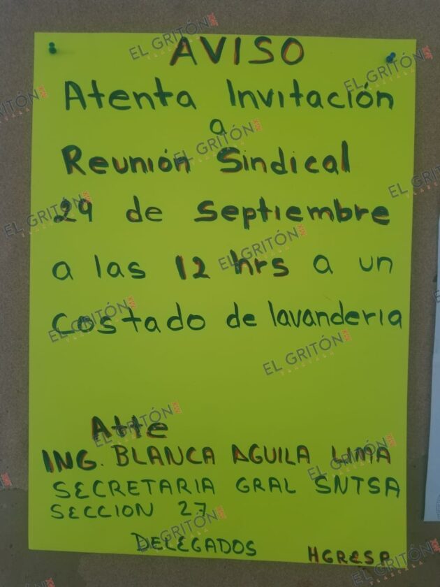 Es más, acusan que durante toda la semana pasada y fin de semana, a través de sus delegados y la colocación de cartulinas en los centros de trabajo de la Secretaría de Salud (SESA), se les ha convocado para que ella personalmente “aclare” la situación, “lo que está haciendo es lo de siempre, quiere confrontarnos, presionarnos para ver a uno por uno para que sigamos teniéndole miedo…qué casualidad que a partir de agosto las convocatorias no son por escrito y sólo por cartulinas, la razón es que legalmente no puede hacerlo”, enfatizó Tomás Osorio Hernández, trabajador de oficinas centrales.