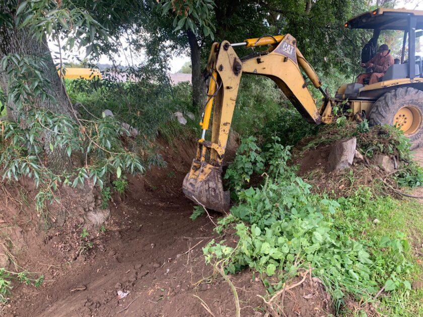 Con ayuda de una retroexcavadora, un trabajador limpia los cauces donde debería correr agua y en los cuales ha crecido la maleza, también se han acumulado desechos con lo que se genera estancamiento del liquido.