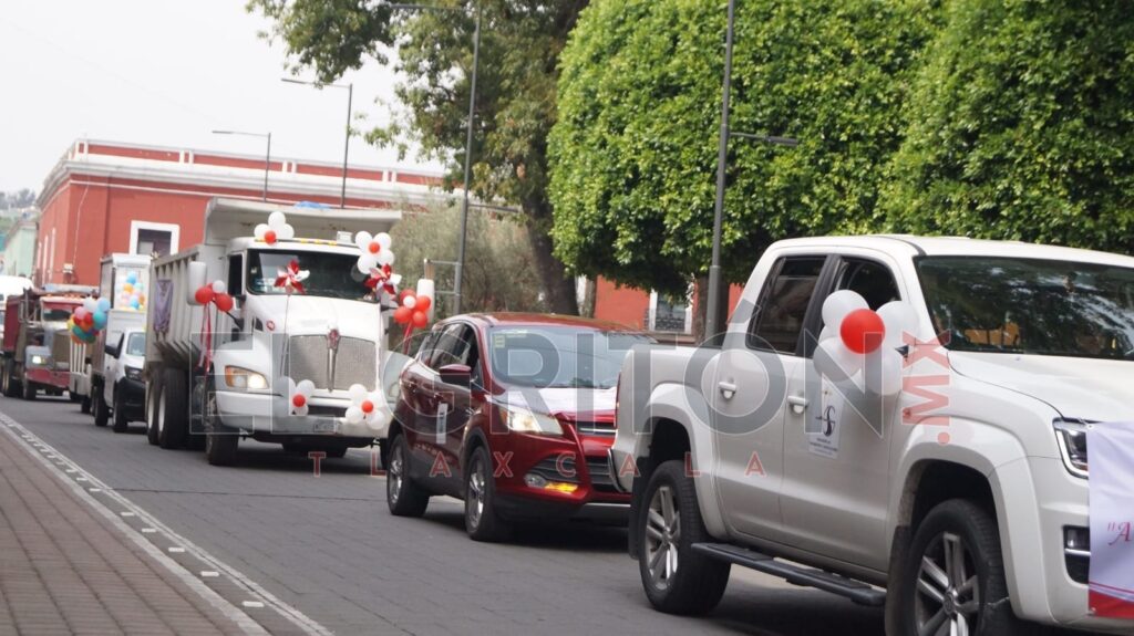 Trabajadores de la construcción y transportes del mismo rubro organizaron una caravana conmemorativa al día de la santa cruz y en el que refrenda su unidad y compromiso de trabajar con el Gobierno de Tlaxcala.