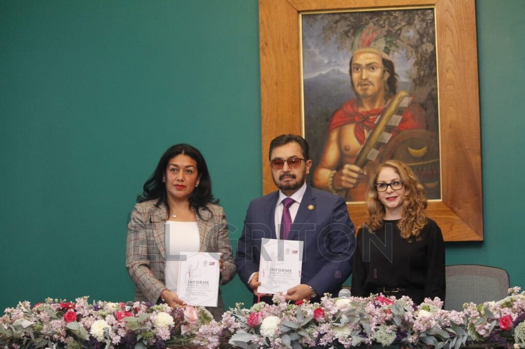 Acompañada de los magistrados y magistradas integrantes del Pleno del Poder Judicial, Cortés Ornelas presentó ante el presidente de la Mesa Directiva del Congreso local y la presidenta de la Junta de Coordinación y Concertación Política (JCCP), José Gilberto Temoltzin Martínez y Marcela González Castillo, respectivamente, el informe desglosado sobre las labores jurisdiccionales y de administración.