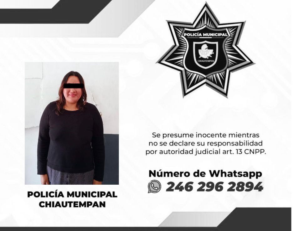 Elementos de la Dirección de Seguridad Pública Municipal, Vialidad y Protección Civil de Chiautempan atendieron un llamado de emergencia el cual resultó en la detención de una mujer por alteración del orden público en la colonia centro.