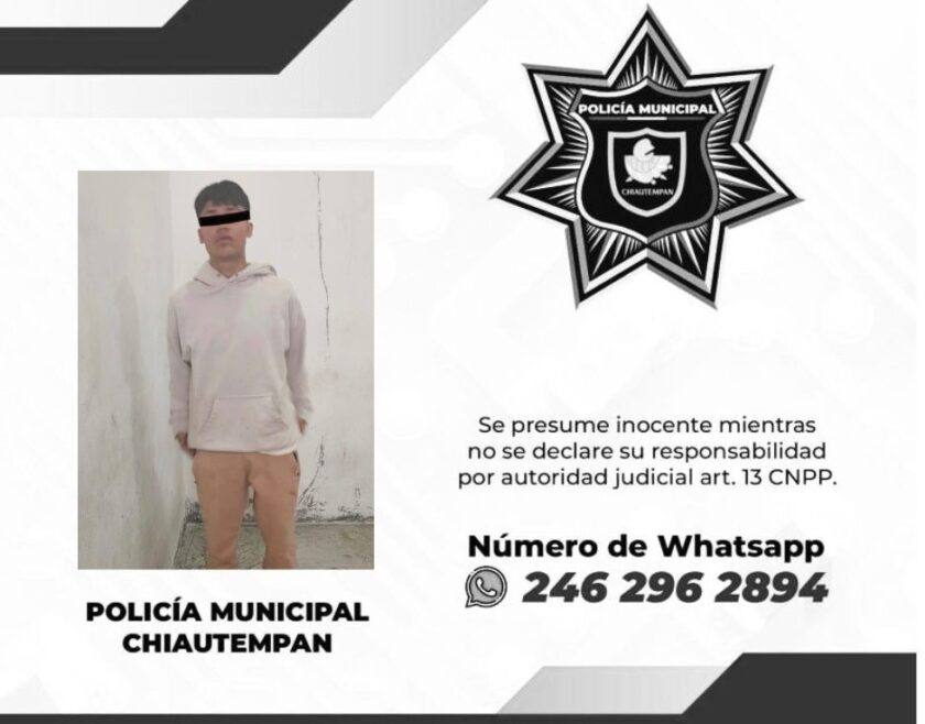 Los elementos adscritos a la Policía Municipal de Chiautempan aseguraron a Osvaldo N., de 19 años de edad y originario de la Ciudad de México (CDMX); Carlos Manuel N., de 33 años de edad y originario de Tabasco y por último, Alejandro N., de 34 años de edad y oriundo de Tlaxcala.