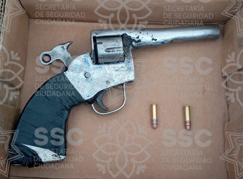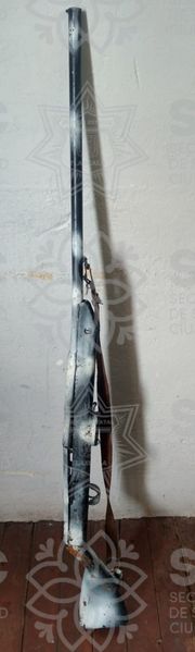 Posteriormente, personal de la SSC, de la delegación de Muñoz de Domingo Arenas, realizaban recorridos de seguridad sobre Calzada Guadalupe, esquina calle Francisco Villa, Xaltocan, y contactaron con una persona del sexo masculino, la cual portaba al hombro un arma de fuego tipo escopeta de fabricación artesanal, por lo que se le solicitó que acreditara la posesión y portación de la misma, a lo que respondió no contar con ningún documento.