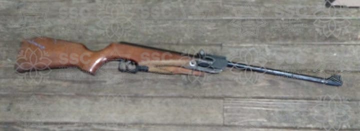 En el segundo caso, el sujeto identificado como Moisés N., de 44 años de edad, fue asegurado por la portación de un rifle de diábolos, mientras caminaba en calle Norte, esquina calle Lázaro Cárdenas, en la comunidad de San Lorenzo Techalote, municipio de Hueyotlipan. El sujeto en aparente estado de ebriedad fue reportado al Servicio de Emergencia del 911.