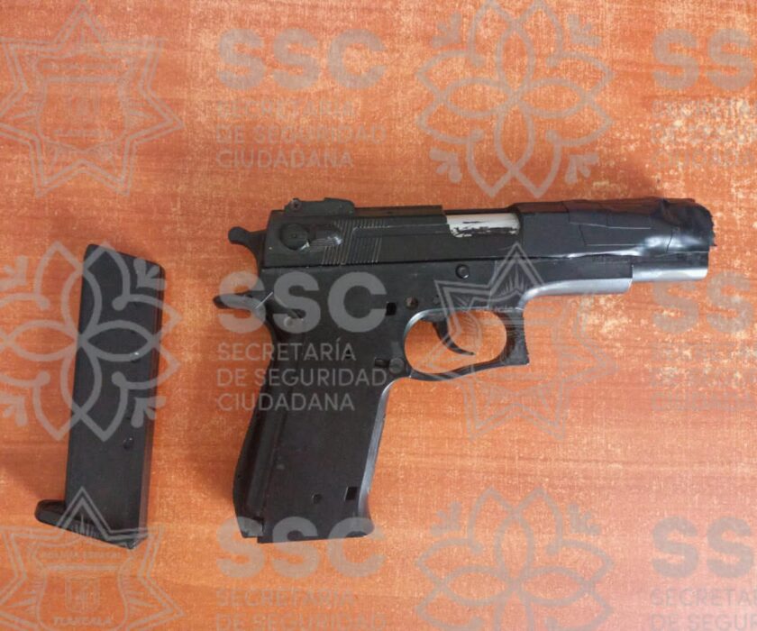El primero de ellos, se trata de Edwin Francisco N., alias “El Güero”, de 25 años de edad, por la portación de una réplica de arma de fuego tipo escuadra. Fue durante una riña sobre el camino de San Mateo Actipac, colonia Alfonso Espejel, en Calpulalpan, por lo que se logró el aseguramiento cuando los elementos realizaba acciones de patrullaje de prevención.