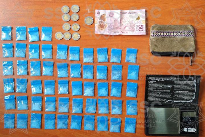 Se trata de Luis “N” de 28 años de edad a quien le fue encontrado entre sus pertenencias 54 envoltorios con un contenido sólido granulado con características propias de la droga sintética conocida como “cristal”, una pequeña báscula digital portátil y dinero en efectivo.