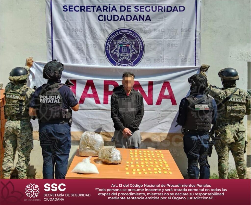 Detienen Secretaría de Seguridad Ciudadana y Marina a sujeto por delitos contra la salud en Zacatelco