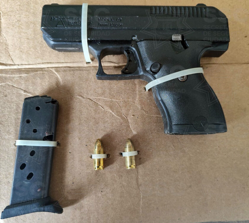 Durante la revisión, localizaron dentro de la unidad marca Aveo -del lado del copiloto- un arma de fuego calibre 9 mm, abastecida con dos cartuchos útiles; al estar ante un probable delito, así como no contar con licencia y permiso de portación arma, elementos de la SSC procedieron con la detención y aseguramiento de Ricardo N.