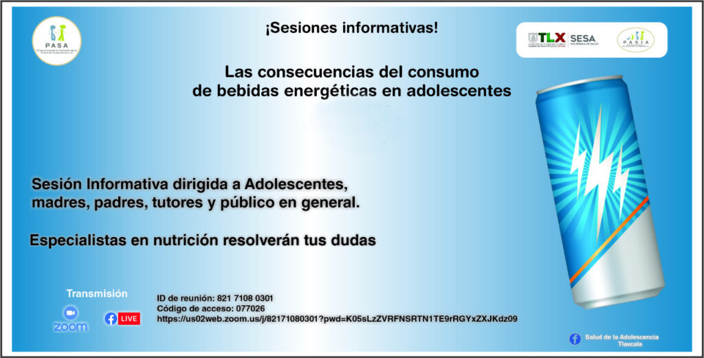 La Secretaría de Salud (SESA), en coordinación con el Programa de Atención de la Salud de la Adolescencia (PASA), transmitió la videoconferencia: “Consecuencias de Bebidas Energéticas en Adolescentes”, dirigida a jóvenes, padres de familia, tutores y público en general.
