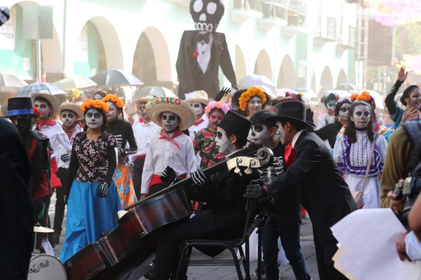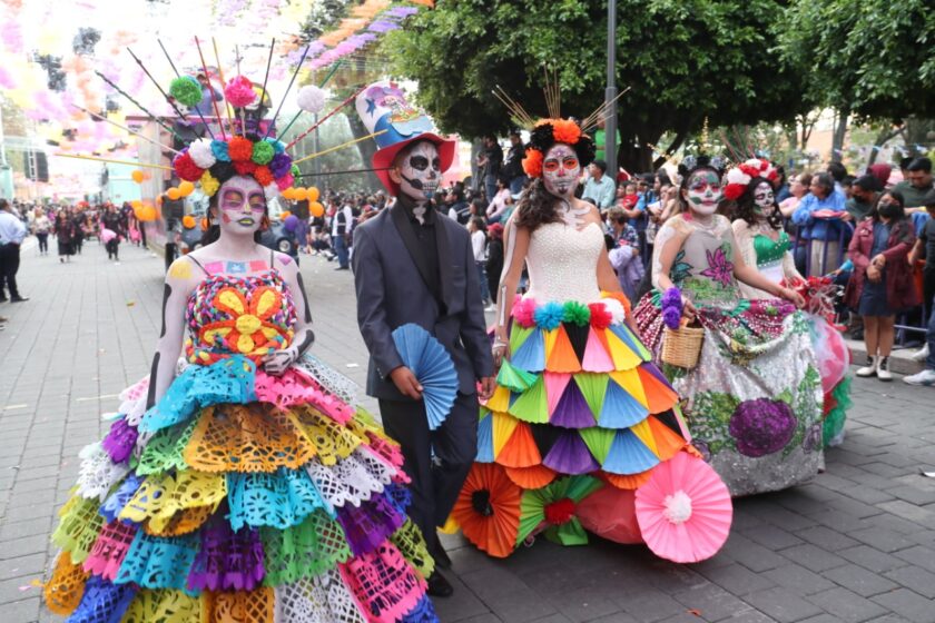 Durante poco más de dos horas, las personas observaron el paso de decenas de catrines y catrinas, bandas de música de instituciones educativas, mojigangas, payasos y zanqueros, así como carros alegóricos de dependencias estatales, del sector privado y de algunos municipios que adornaron las unidades con detalles característicos de cada región.