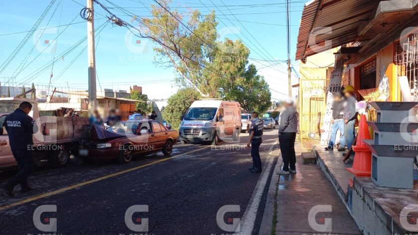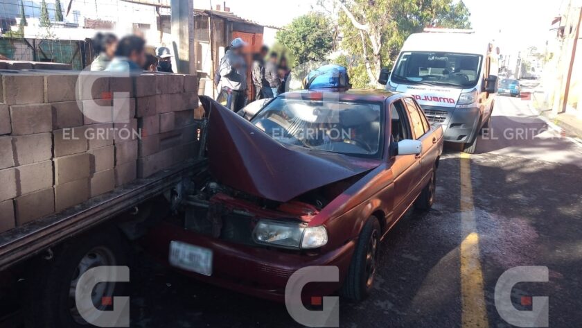Dos lesionados es el saldo que dejó un choque que involucró a un vehículo Nissan tipo Tsuru color guinda y a una camioneta Pick up que transportaba block.