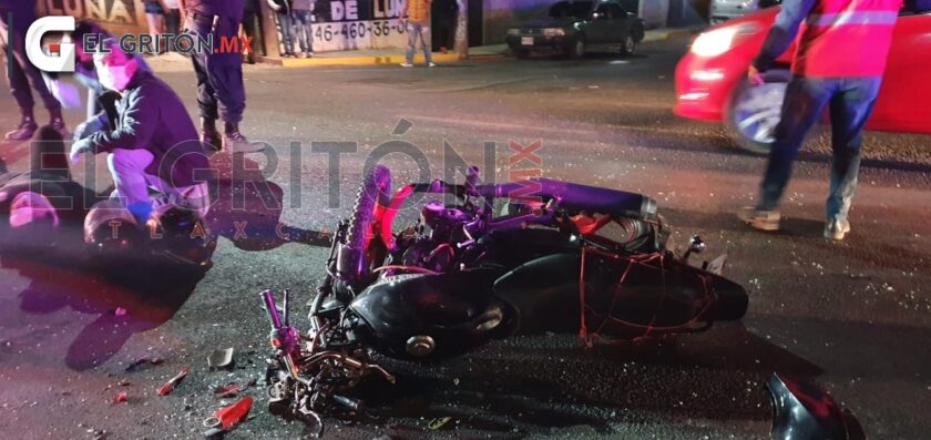 Una pareja lesionada de gravedad, fue el saldo que dejó el choque de una motocicleta y un vehículo particular, la noche de este sábado 13 de marzo, en la carretera Vía Corta Chiautempan – Puebla, a la altura de Teolocholco.