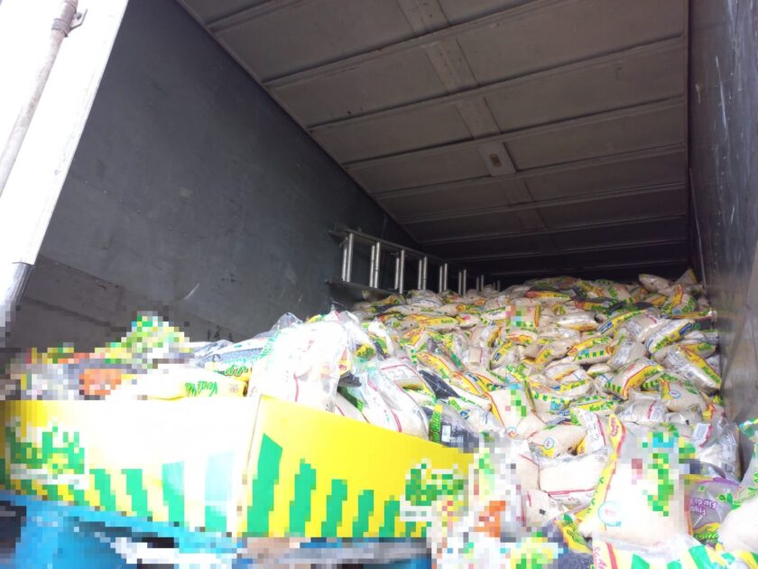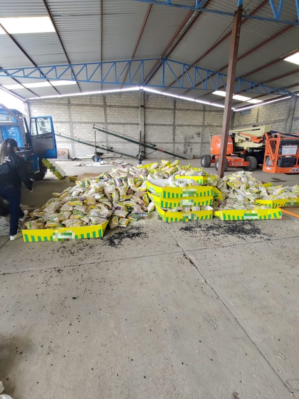 En dicho cateo se aseguraron 17 vehículos, de los cuales nueve son de maquinaria pesada (tres plataformas, dos cajas secas, una retroexcavadora, una cabeza de un tractocamión y un Torton amarillo), además de cuatro cartuchos, y mercancía de una empresa que vende arroz y frijol.